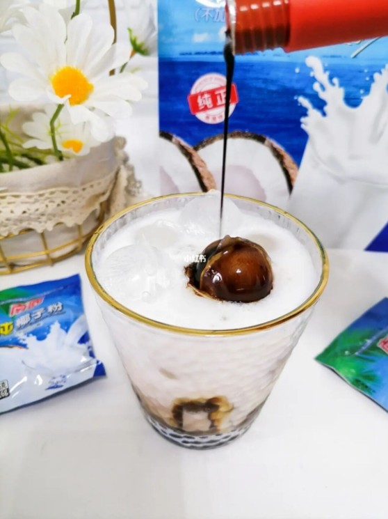 ?2.杯中放入冰块,倒入溶解后的椰奶
