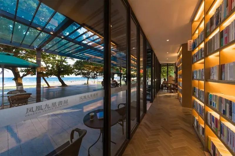 海边有个书屋,叫凤凰九里书屋。四面大透明玻璃窗三面环海,窗外面是蓝天、白云、大海、绿叶灌木,整个融合成一幅绝美的画卷。