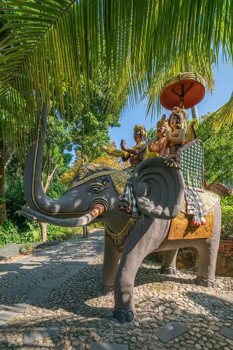 景区不大,但异域风情浓郁,仿佛来到了印尼。巴厘村有着不同的观赏区,大门是其中一个,因形状特别、洋溢着神秘的色彩,人们通常将它称之为通天门。