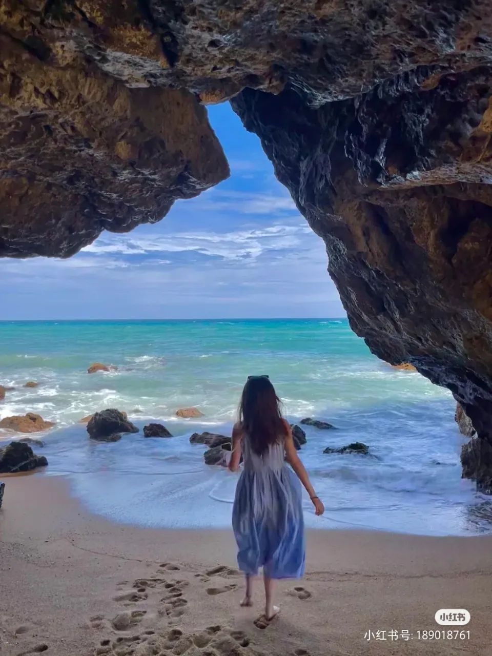 洞穴野海滩视觉冲击感很强,湛蓝的天,肆意流淌的云,让人忍不住想跳起来拥抱这自然。