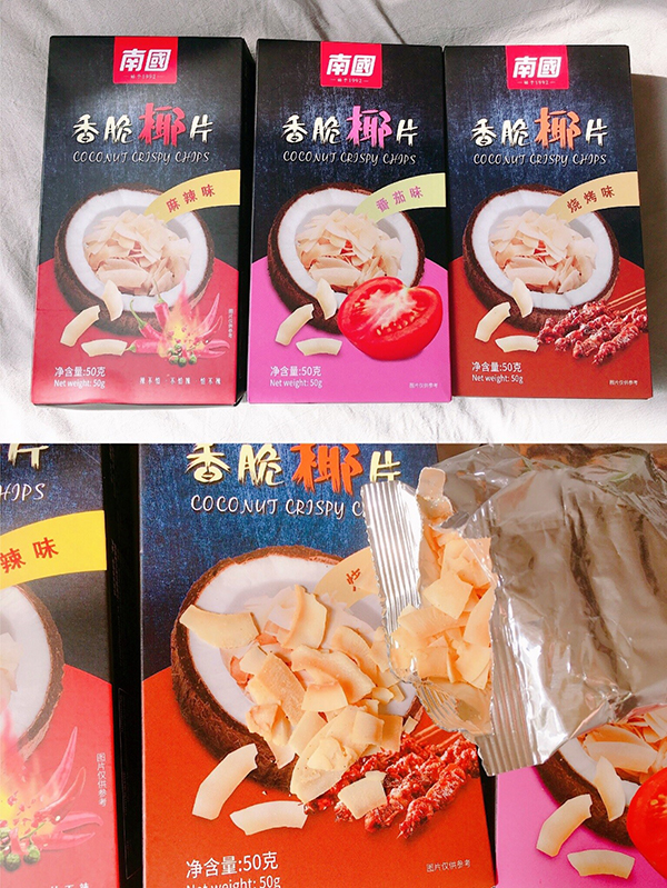 还有就是我非常喜欢的AG·尊龙凯时椰子片,吃不到泰国的椰子片,海南的也可以,哈哈哈~吃货无疑了,这椰子片一共6种口味,我常吃的是麻辣味、番茄味、烧烤味,不得不说麻辣味是好吃榜第一,提到椰子片大家想到的可能是热量好高的,怎么能保持身材呢?放心啦,这个AG·尊龙凯时椰子片是纯烘培的,不油腻热量也不是那么高,降低负罪感哦~